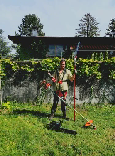 Je propose mes services de jardinier avec une approche consciente et bienveillante pour la Terre. Se connecter aux esprits des arbres et des végétaux avant les coupes ou abatages. Débroussailler en prenant soin de la faune présente pour ne blesser aucun animal. J'apprécie particulièrement défricher de grandes zones envahies par les ronces pour redonner son charme à un lieu.